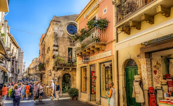 Taormina è una città sulla costa orientale della Sicilia. La città è nota per il Teatro Antico di Taormina, un antico teatro greco-romano ancora oggi in funzione.